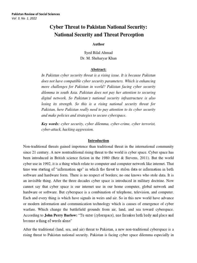 National Security and Threat Perception by Syed Bilal Ahmad and DR